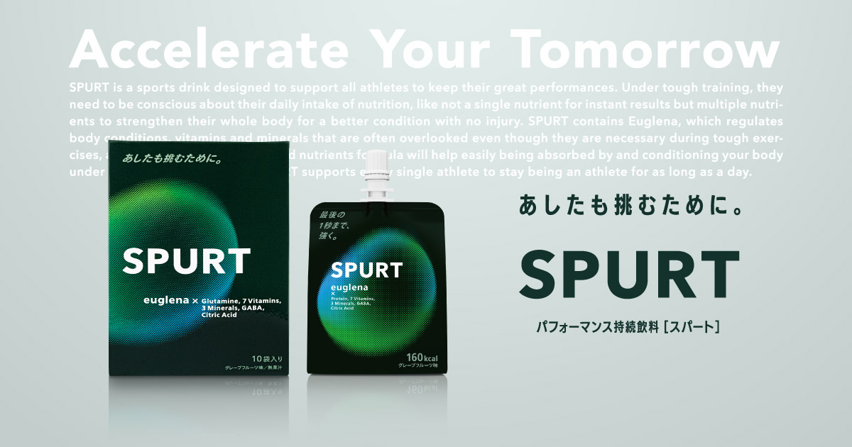 SPURT。スポーツで結果を残したい方へ「あしたも挑むために。」ユーグレナが提供するカラダ持続飲料。不足する栄養をしっかり補うことでコンディショニングを整え、リ…